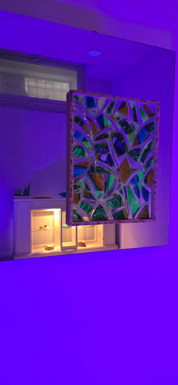 Quadro in resina luminescente e specchio, 57x67cm.